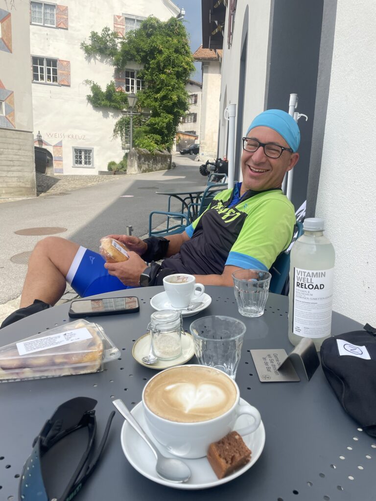 Von da an ging es nur noch bergauf nach Klosters, Davos und schliesslich auf den Flüelapass – 50km immer es bizzeli ufe. Etwas nervig war der viele Verkehr, irgendwann gewöhnt man sich daran. Die Abgahrt vom Flüelapass ist schön, schnell und diesmal saukalt – deshalb schnell fahren, je schneller man fährt desto wärmer.