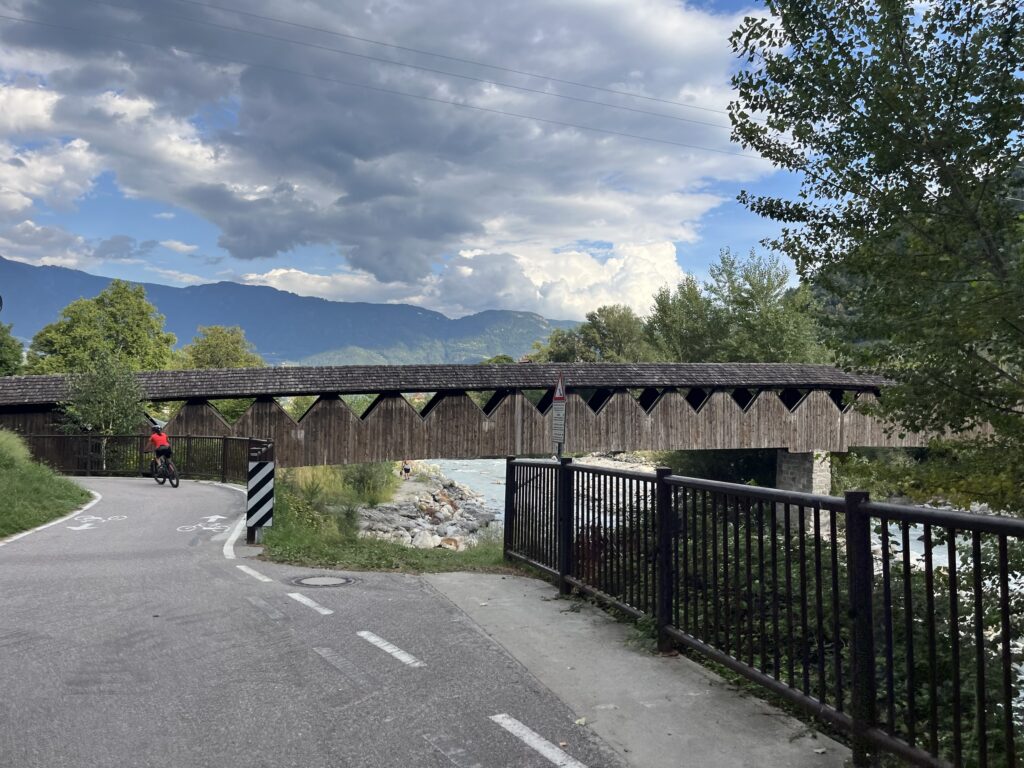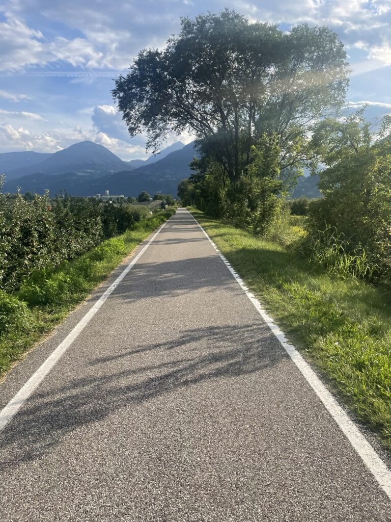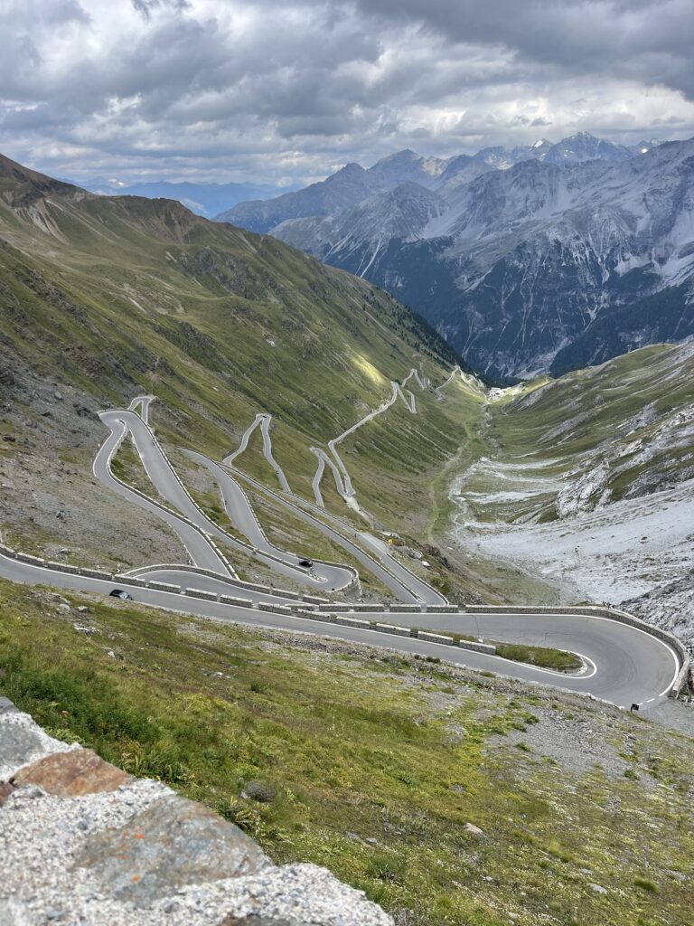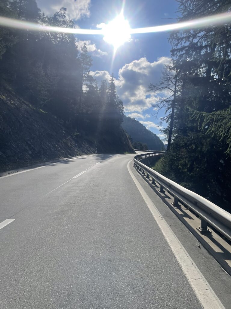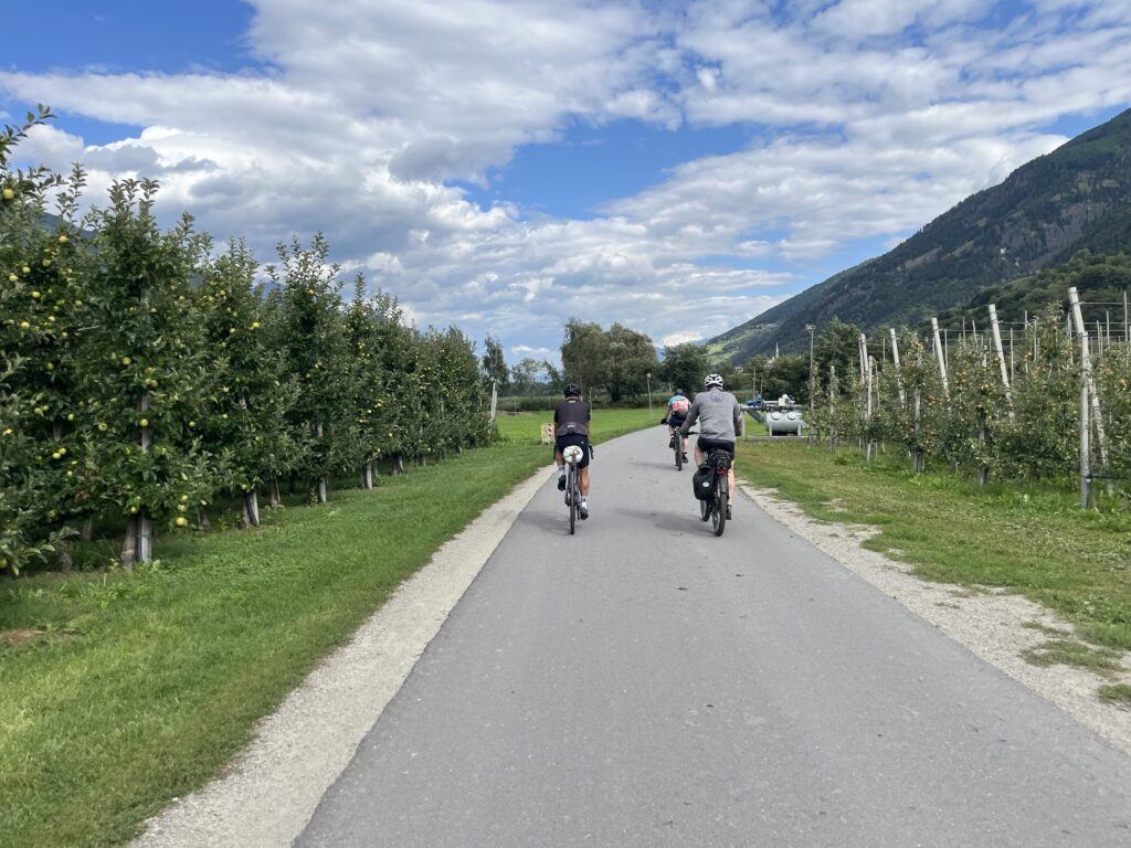 Was ist das Namen Ofenpass unter die Räder, danach den Umbrail und zum Schluss den Stelvio. Das waren die ersten 50 km, welche nur Berg aufging. Und wenn es bergauf geht, geht es bekanntlich auch wieder bergab, nämlich 100 km Richtung Bozen. Ab Prad führte der Weg immer durch sehr schöne Obstgärten und Wälder entlang eines Flusses.