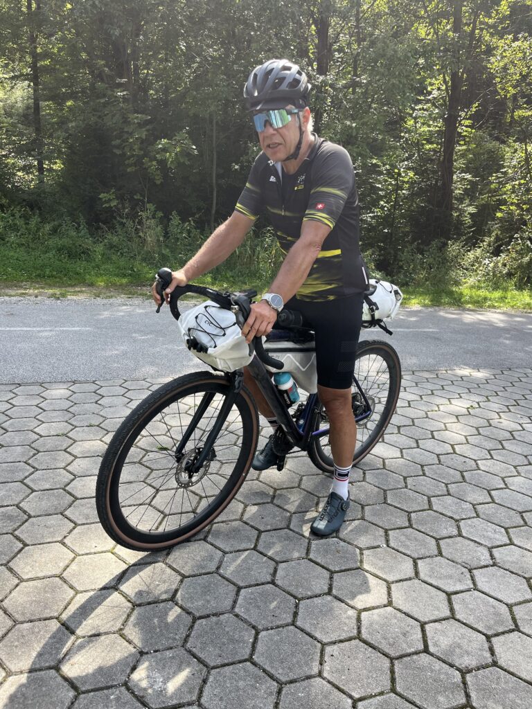 Départ frisquet Autriche vers 9h pour descendre puis remonter vers l’Italie (sur la carte vers le sud on a l’impression que ça descend mais…). Ensuite arrivée sur la Slovénie avec une descente ponctuée de mini montées . Donc on est passé sur 3 pays.